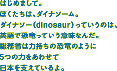 リングネームのアンドリューは「勇気のあるもの、勇ましいもの」を意味し、自身にぴったりだと命名した 。王国設立後、入江茂弘とのタッグで2awタッグ王座を戴冠。 得意技 スピアー;総務省の仕事 ダイナソームゲーム 行政相談for KIDS おもしろ電波教室! 情報通信白書for Kids 国民のための情報セキュリティサイト(キッズ) テレビの見方を学ぼう!ダイナソー国定記念物(ダイナソーこくていきねんぶつ)とは。 意味や解説、類語。 《Dinosaur National Monument》⇒ダイナソー国定公園 goo国語辞書は30万4千件語以上を収録。